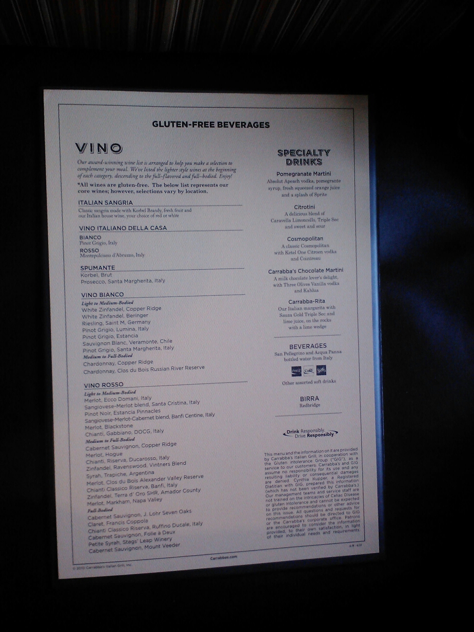Gluten Free Menu With Advice Photo From Carrabba S
